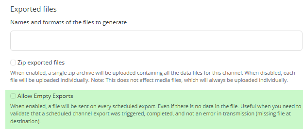 We have multiple channels where we have to send a daily file (FTP) of product changes. However, there may be days when there are no updates. Currently, no export file will be created nor sent out to the destination.